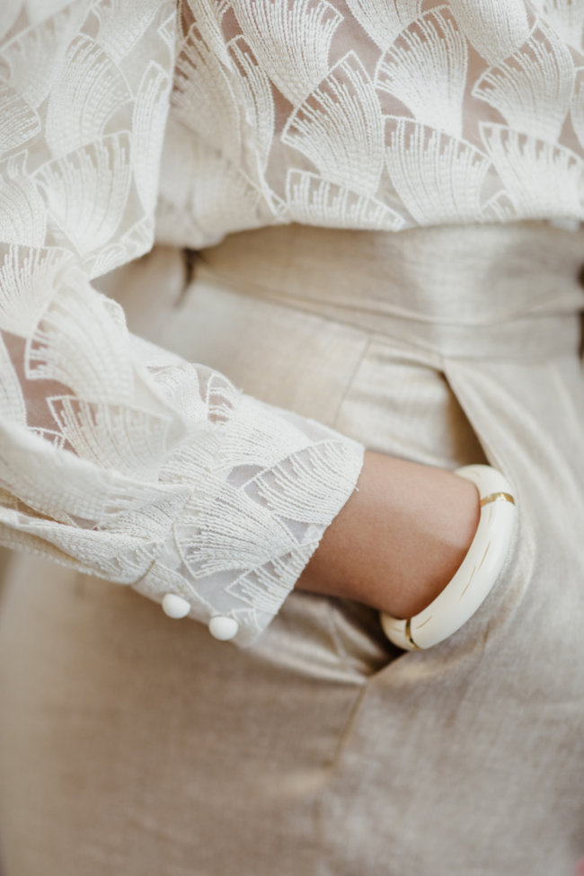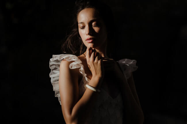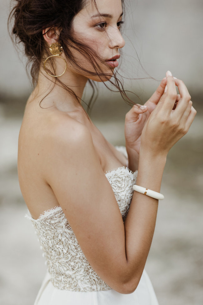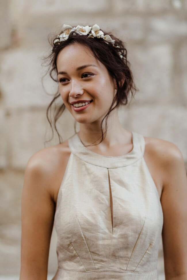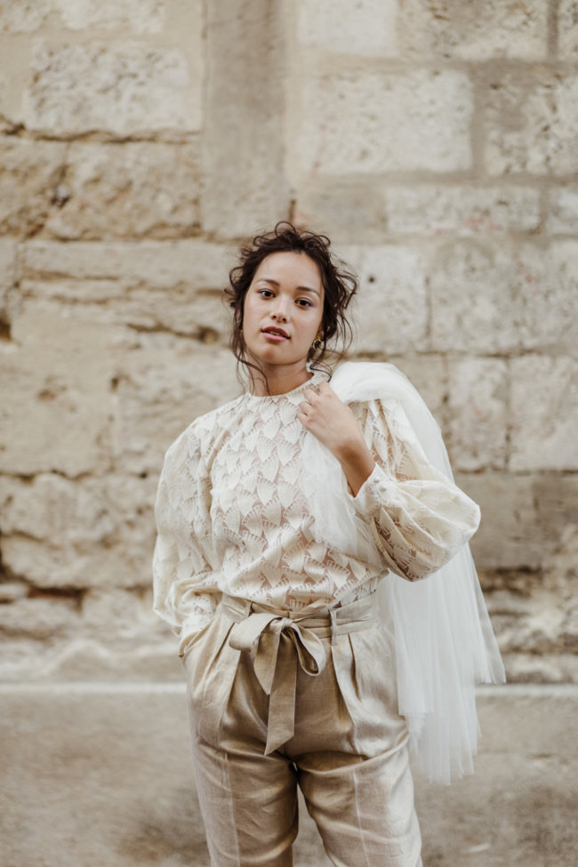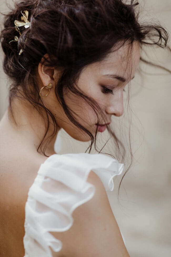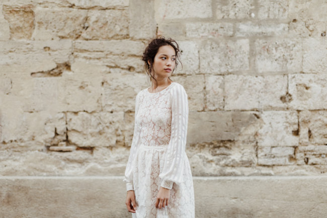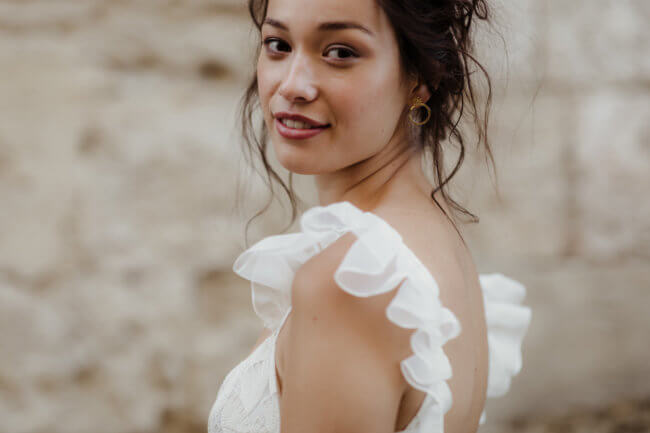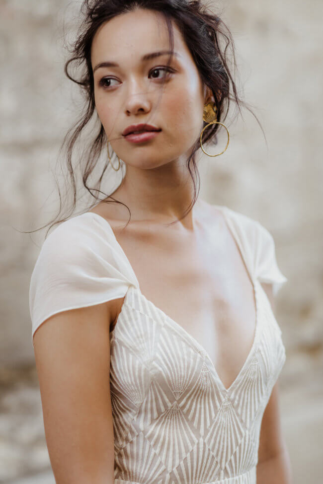 Un immense merci à Repetto pour les chaussures (Sandales Bikini , richelieus Zizi ) et à Olympe mariage pour les accessoires (bracelet : Aurélie Bidermann ; boucles d’oreille : Elise Tsikis ; peigne : Maison Sabben ; couronne : Kokoro)