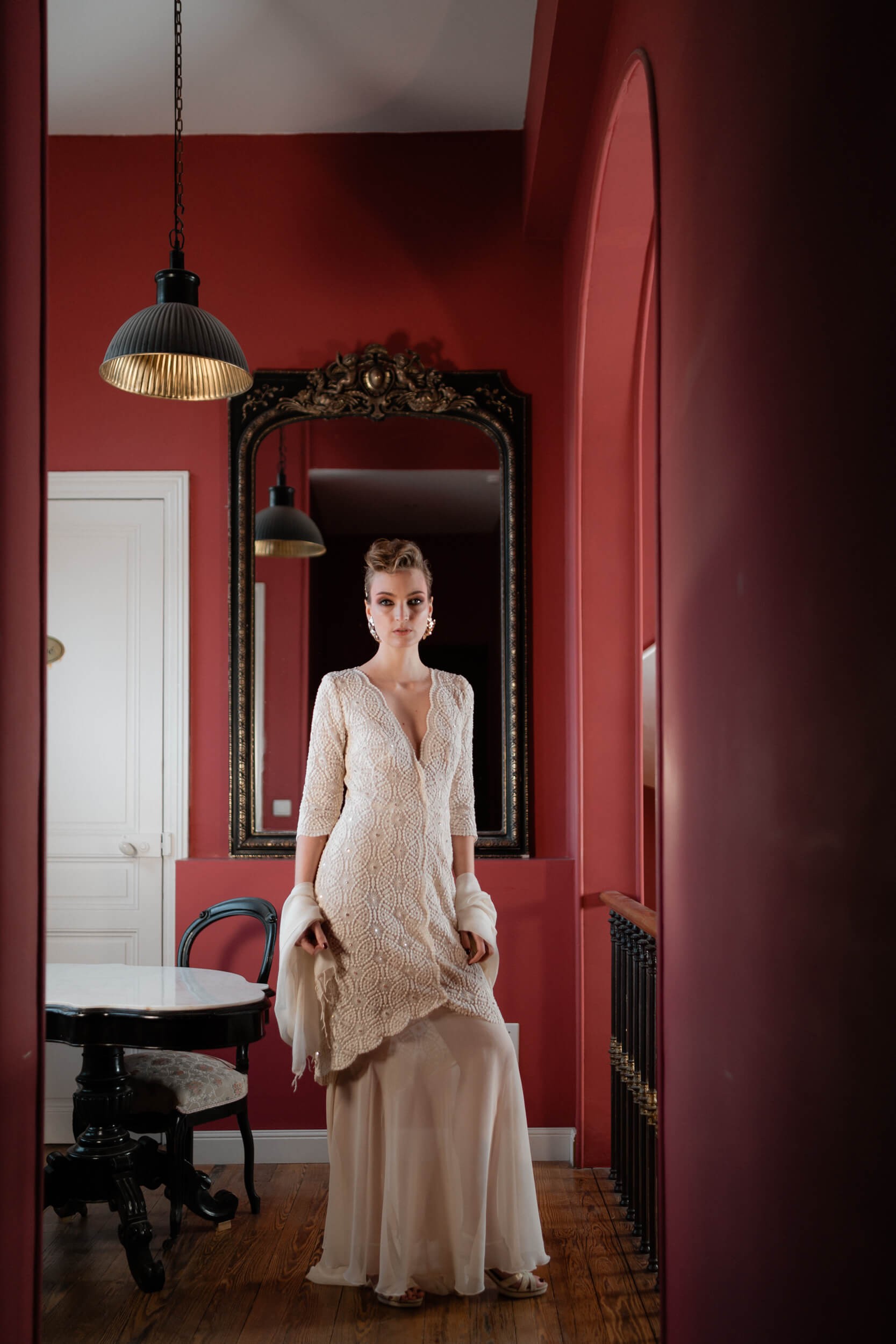 >> dans des tissus et dentelles exceptionnels, aux détails raffinés